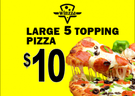 (serves 15-20) Includes your choices of 5 any large pizzas.